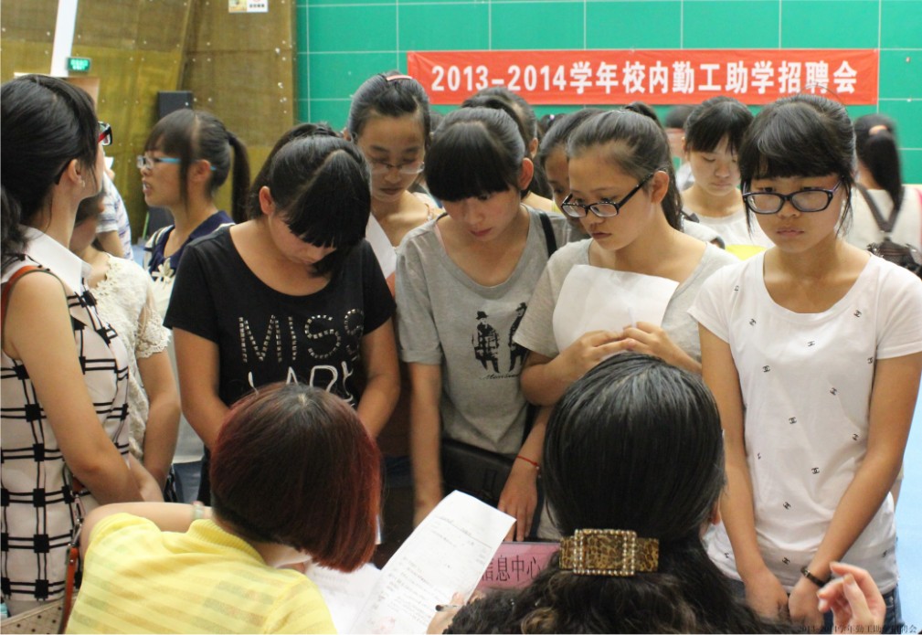 9月17日中午,2013-2014学年校内勤工助学招聘会在学生事务中心和多功能厅影视厅顺利举行,450余名家庭经济困难学生参加了本次招聘会,230余名应聘学生被学校相关部门现场直接录用。