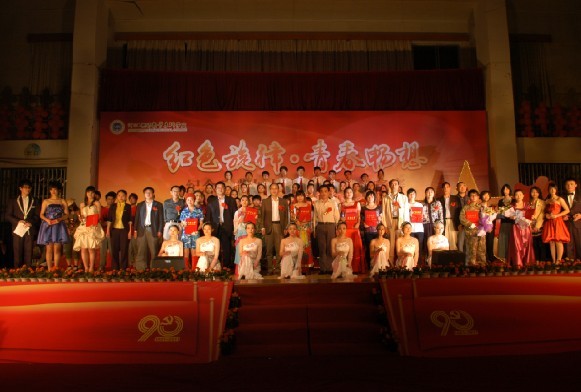 为纪念建党90周年,弘扬爱国主义精神,由校党委主办、团委承办的“红色旋律青春畅想”纪念建党90周年红歌会总决赛,于5月24日晚上6点30分,在校体育馆隆重举行。校党委书记眭宝良,校党委副书记杨俊杰,副校长金辉,校党委委员、校长助理韩忠培出席决赛现场并为获奖团队颁奖。各党总支、相关部门负责人以及市学联主席、校青年教工代表、各大高校学生会主席与全校1500余名学生一起观看了比赛。