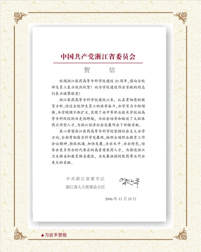 ʱÈÎÕã½Ê¡Î¯Êé¼Çϰ½üƽͬ־ÔÚÖÂÎÒУ½¨Ð£¶þÊ®ÖÜÄêºØÐÅÖÐÌá³ö¡°ÖÔÐÄÏ£ÍûÕã½Ò½Ò©¸ßµÈר¿ÆÑ§Ð£¼á³ÖÉç»áÖ÷Òå°ìѧ·½Ïò£¬È«Ãæ¹á³¹Âäʵ¿ÆÑ§×ðÁú¿Ê±d88¹Û£¬°´ÕÕÈ«¹úÖ°Òµ½ÌÓý»áÒ龫Éñ£¬ÇÀ×¥»úÓö¡¢¼Ó¿ì×ðÁú¿Ê±d88£¬°ì³öÌØÉ«¡¢°ì³öˮƽ£¬ÅàÑø³ö¸ü¶à·ûºÏʱ´úÒªÇóµÄ¸ßËØÖÊÒ½Ò©È˲ţ¬ÎªÍƽøÕã½ÎÀÉúǿʡºÍ½ÌÓýǿʡ½¨É裬Ϊ×ðÁú¿Ê±d88׿¹úµÄÒ½Ò©ÊÂÒµ×ö³ö¸ü´óµÄ¹±Ïס±µÄÖØ´óָʾ¡£