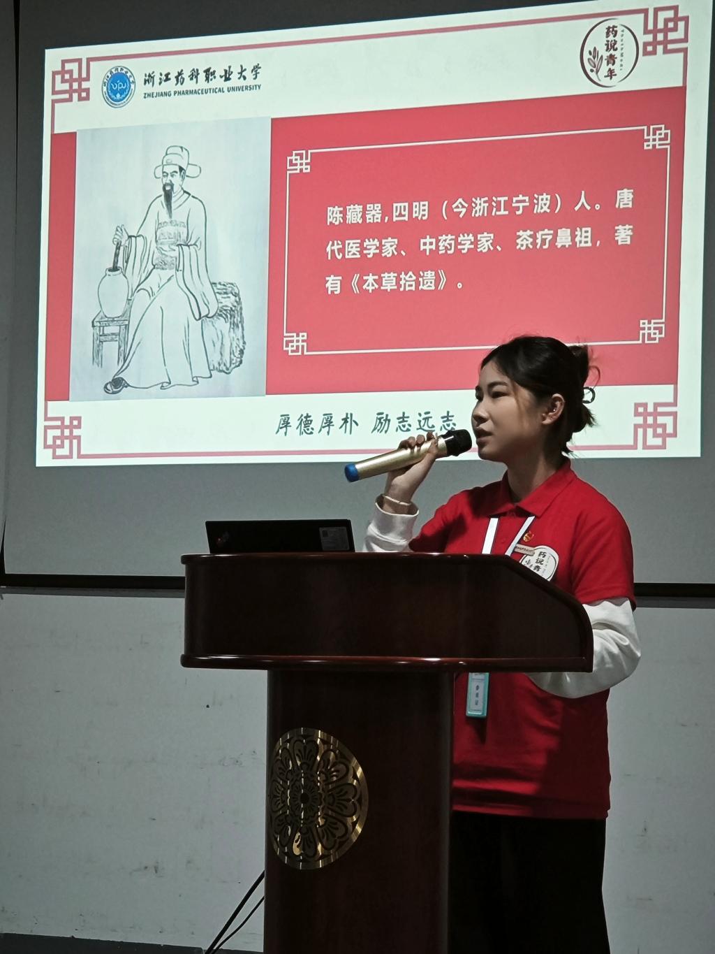 “药”说青年宣讲团成员从“药行街”的故事说起,围绕中国医药文化、宁波医药史、宁波老字号、宁波医药人等内容进行生动精彩的宣讲。上药控股宁波医药股份有限公司的青年代表讲述了医药人守正创新打造服务能力,铸就健康服务体系的“宁医人精神”。