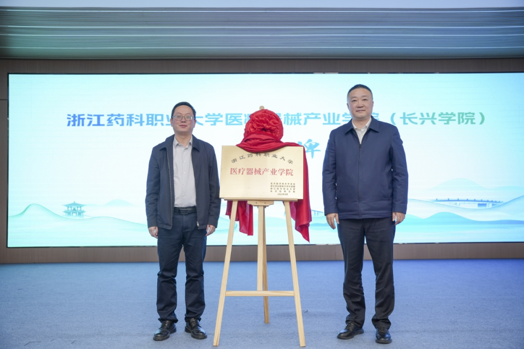 ▲浙江尊龙凯时d88医疗器械产业学院(长兴学院)揭牌。